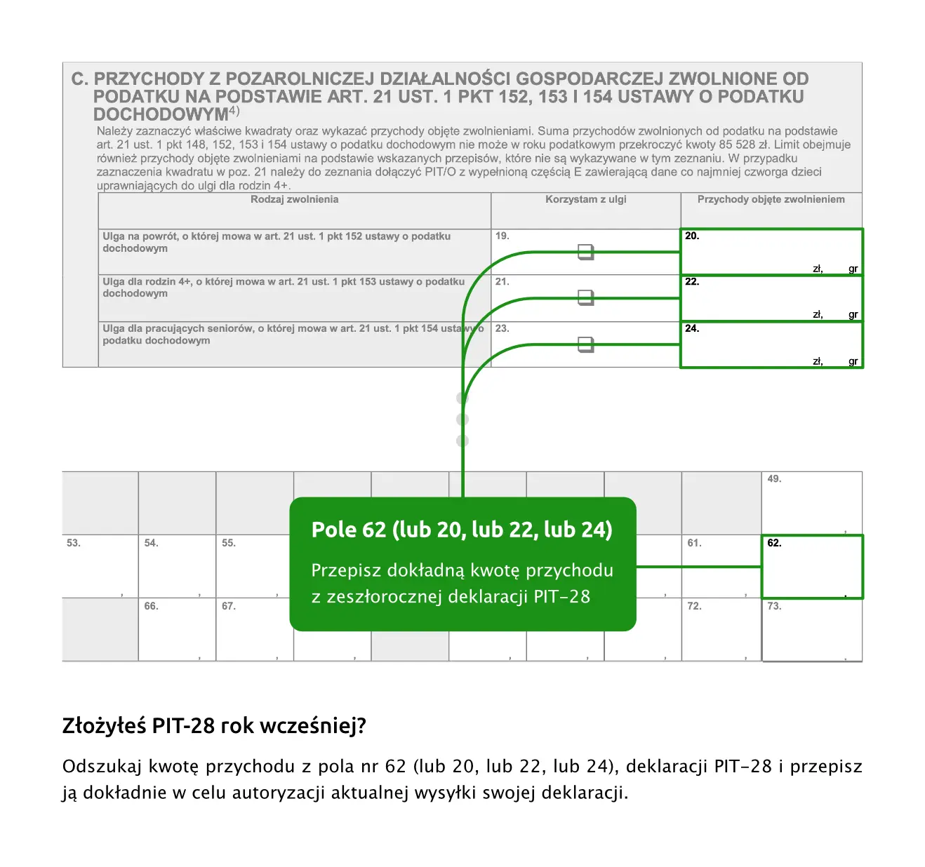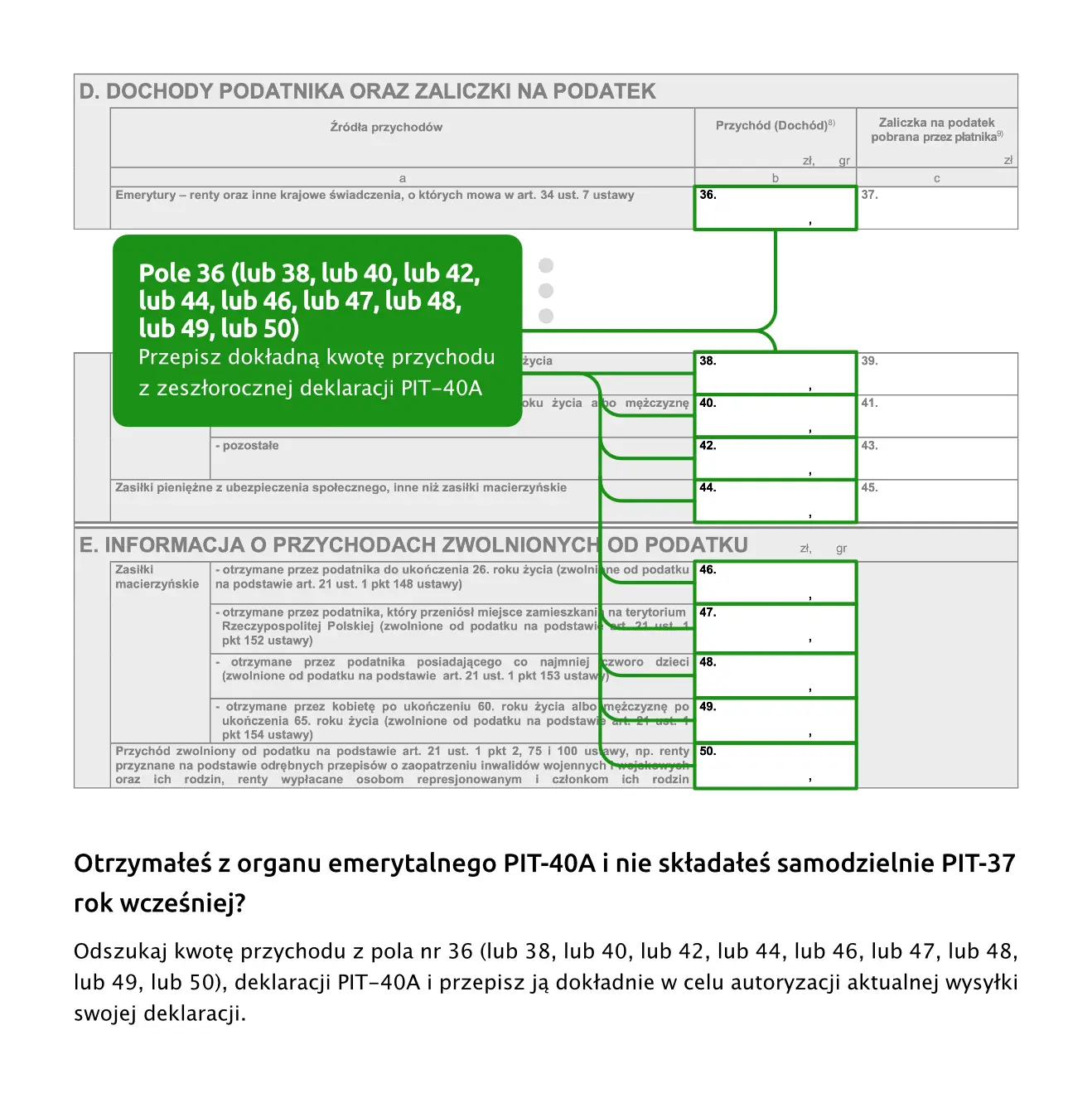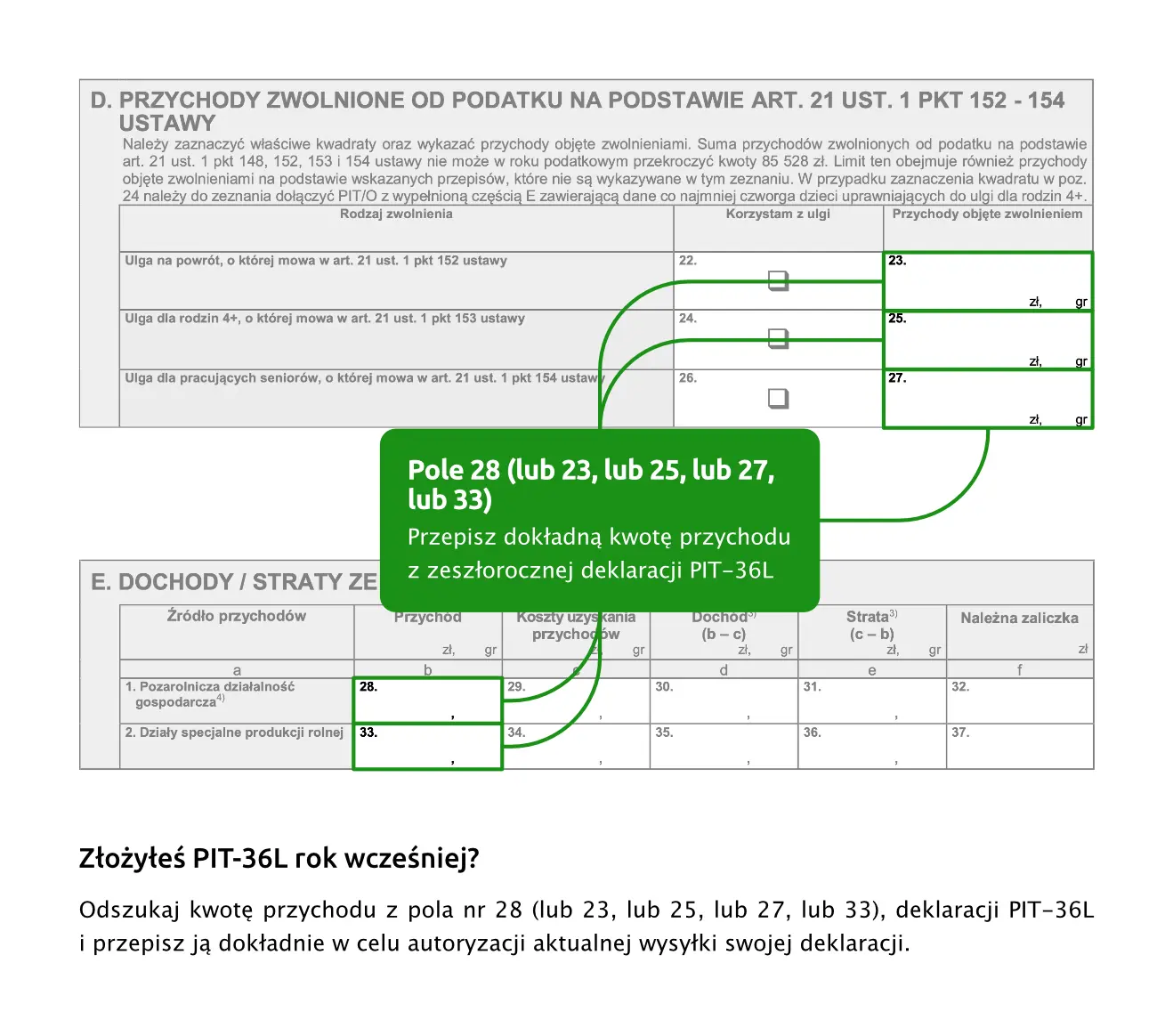 Jeśli składałeś w zeszłym roku np. PIT-37, a w tym roku składasz PIT-36, to należy wziąć kwotę przychodu ze złożonego w zeszłym roku z PIT-37.