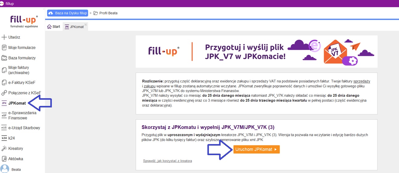 Od wersji programu fillup 6.18.0 udostępniliśmy nowy miesięczny kreator JPK_V7M i kwartalny JPK_V7K. Jest to nowy Kreator JPKomat dużo wydajniejszy i pozwalający na sprawne zaimportowanie i edycję danych z nawet kilku tysięcy faktur oraz pozwalający na szybsze generowanie pliku XML JPK_V7 do wysyłki.