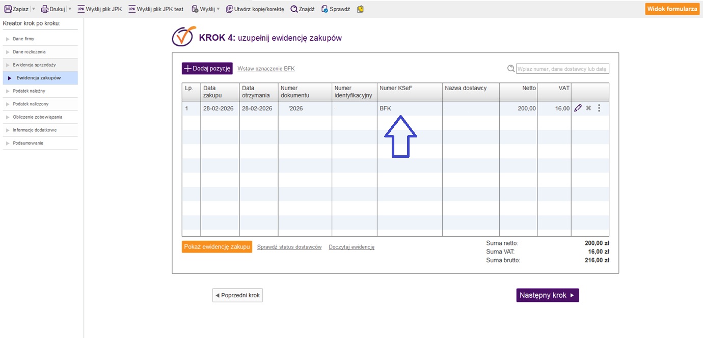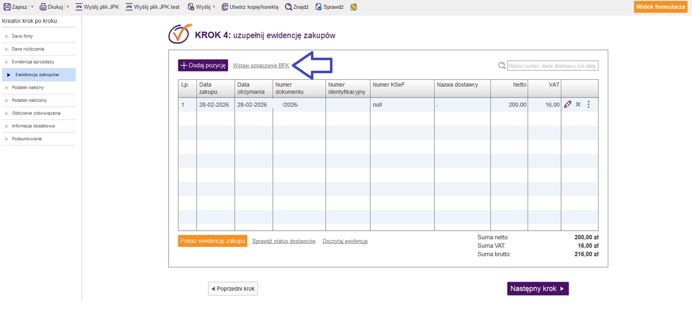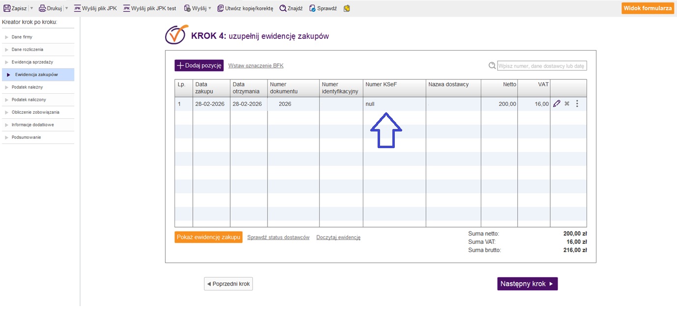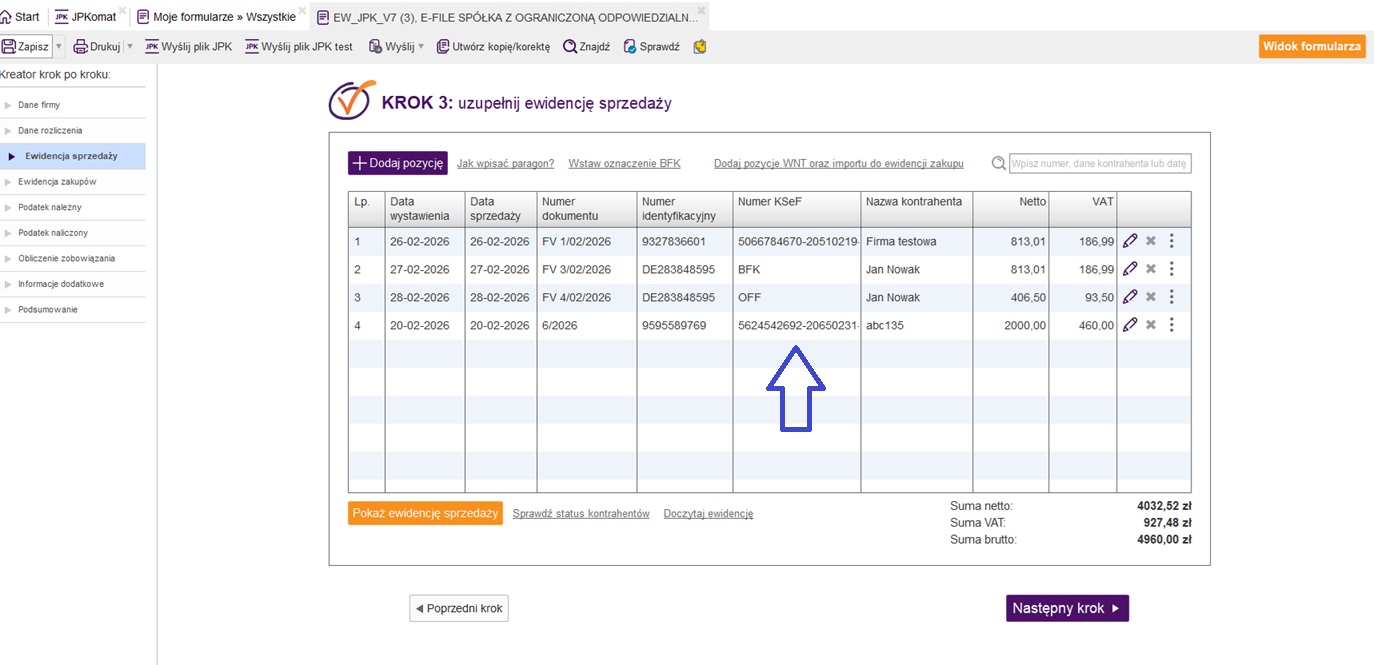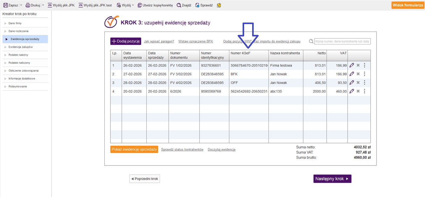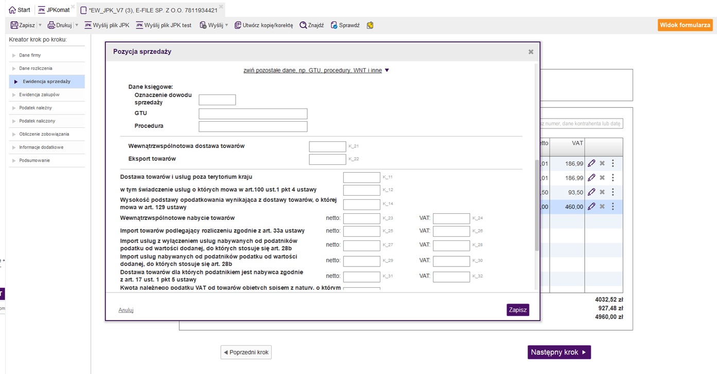 Krok 3 – uzupełnienie ewidencji sprzedaży