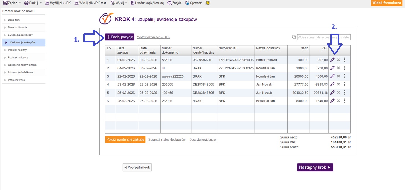 II. Krok 2 – uzupełnienie ewidencji sprzedaży i zakupu