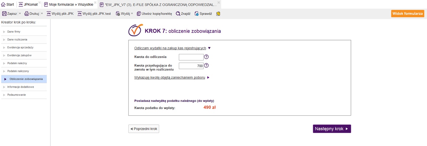 V. Krok 5 - obliczenie zobowiązania podatkowego