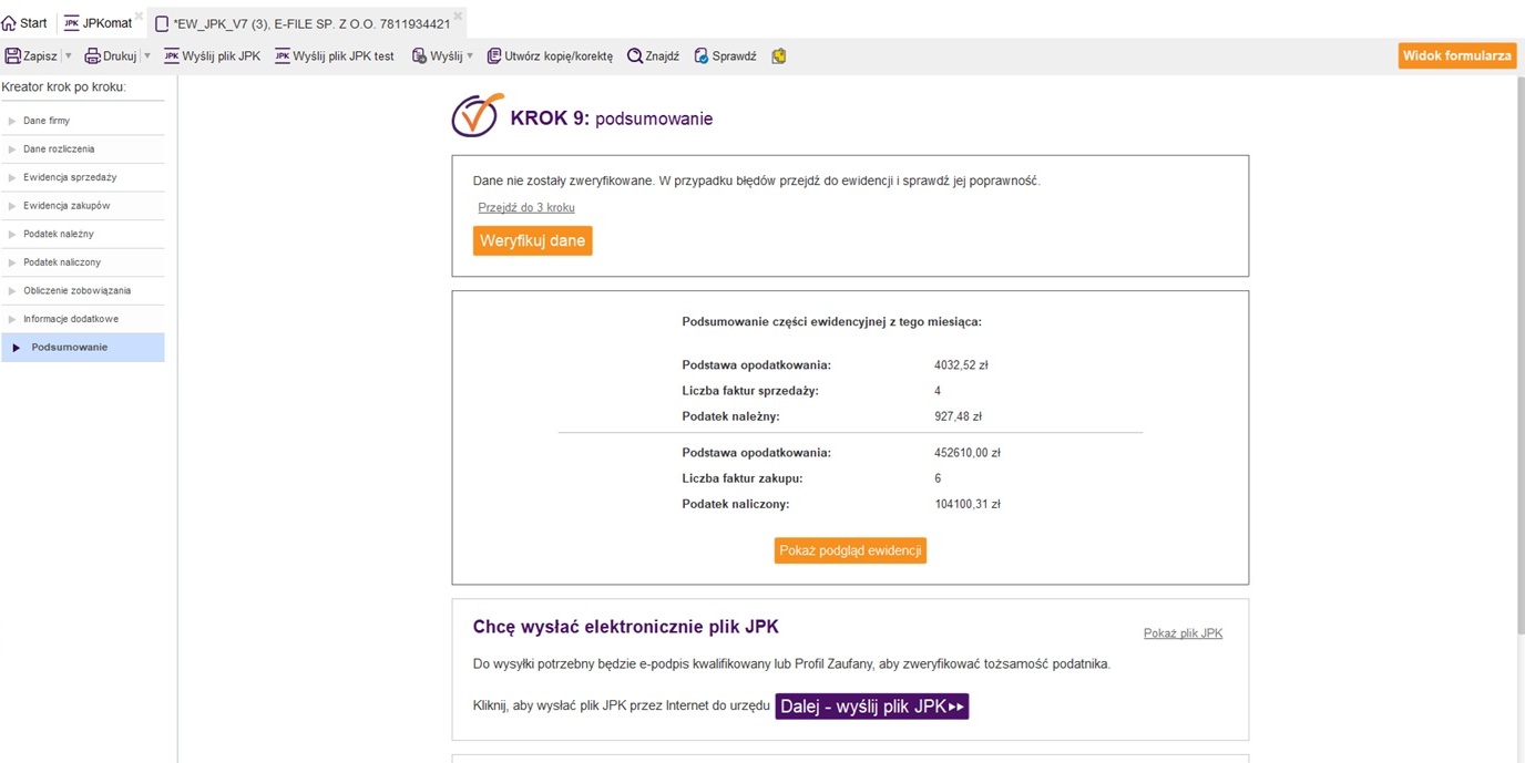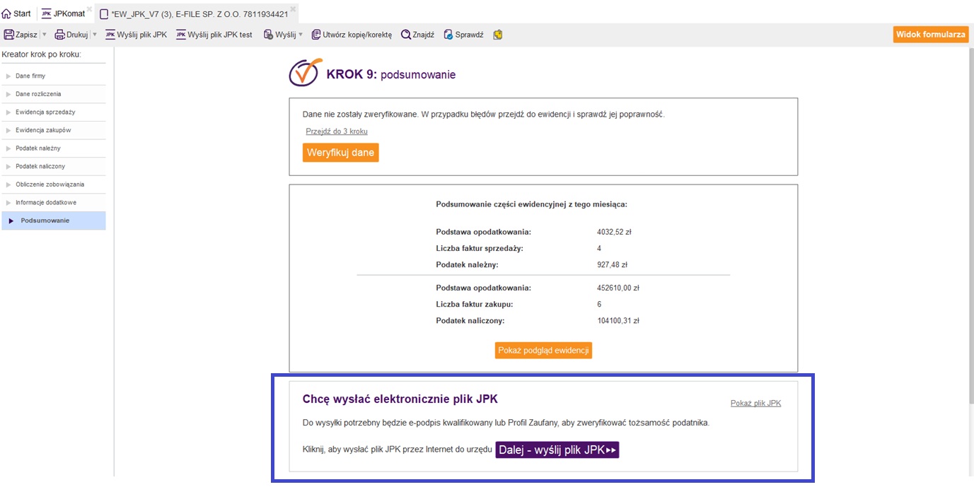 Krok 9 – podsumowanie i wysyłka pliku JPK_V7M lub JPK_V7K